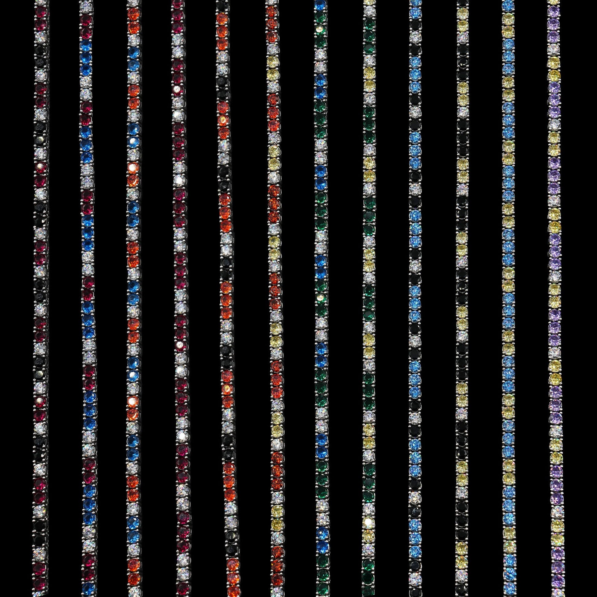 3MM Diamond Colored Tennis Chains in White Gold- All Colors