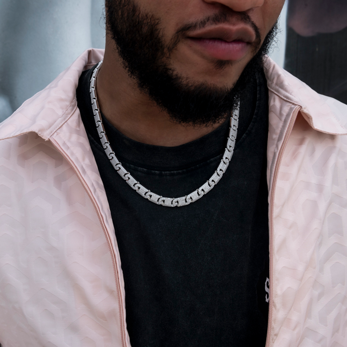 Introducing the Flat Pave Valentina Chain in White Gold. These connected Valentina links are fully iced in pave hand-set stones, designed to catch the light from every direction. Crafted with high-quality 14k White Gold, this chain offers both durability and luxury. Stack it or wear it solo for the perfect drip that will upgrade your fit!