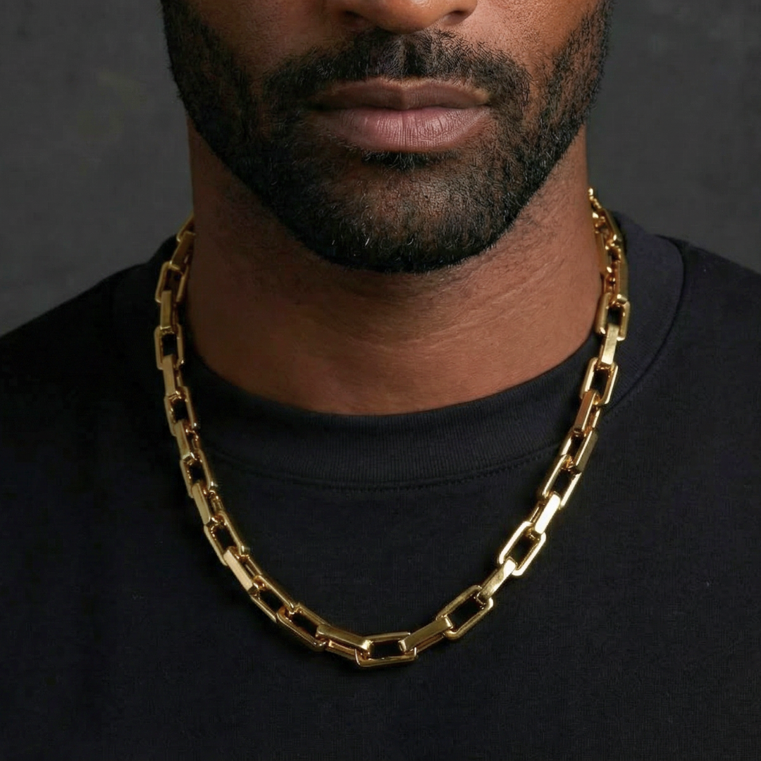 Introducing the "Boxed Anchor" Gold Chain – a luxurious reinterpretation of the classic anchor chain. This exquisite piece features squared links that infuse a modern twist into the traditional design, enhancing its visual appeal with a sleek, geometric flair. Crafted with precision, each link mirrors the strength and stability of an anchor while presenting a polished, sophisticated look.