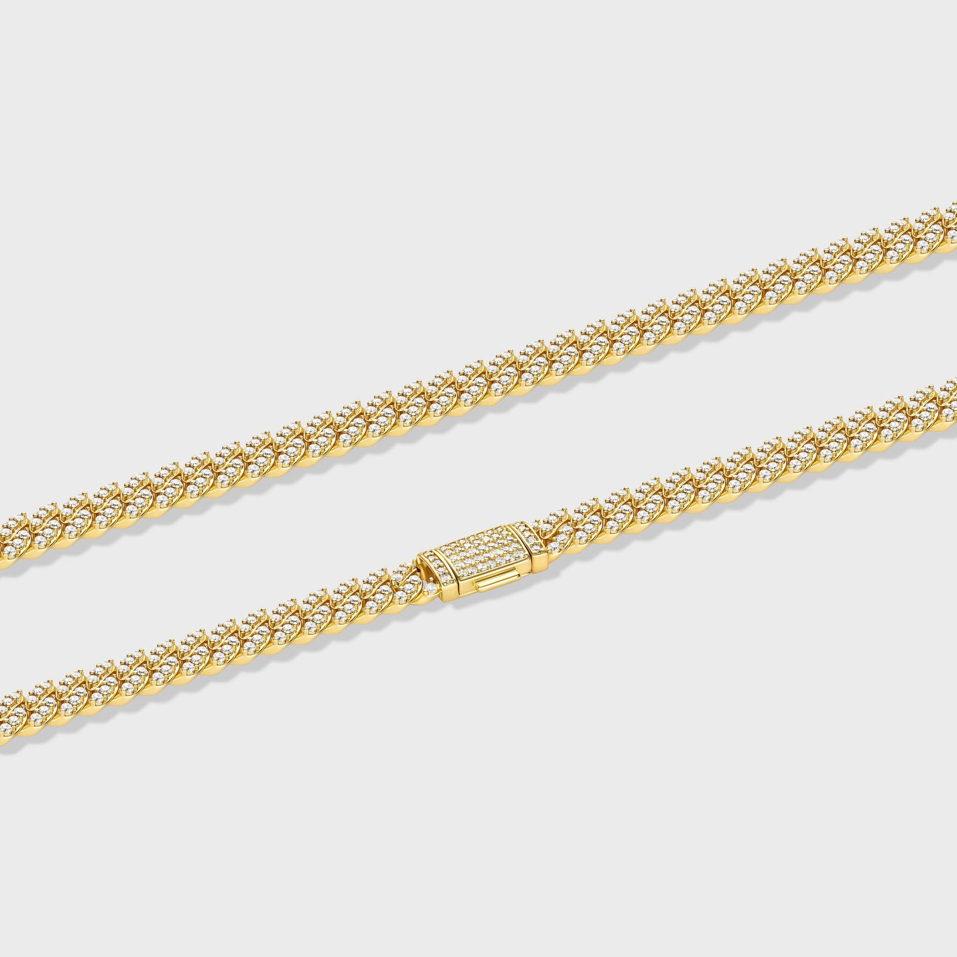 Introducing our 8mm Iced Cuban Gold Chain, this chain features intricate detailing and sparkling CZ Diamonds with real 18K Gold that catch the light at every angle. Whether you're dressing up for a night out or adding some extra bling to your everyday look, our 8mm Iced Cuban Gold Chain is the perfect accessory for any occasion.
