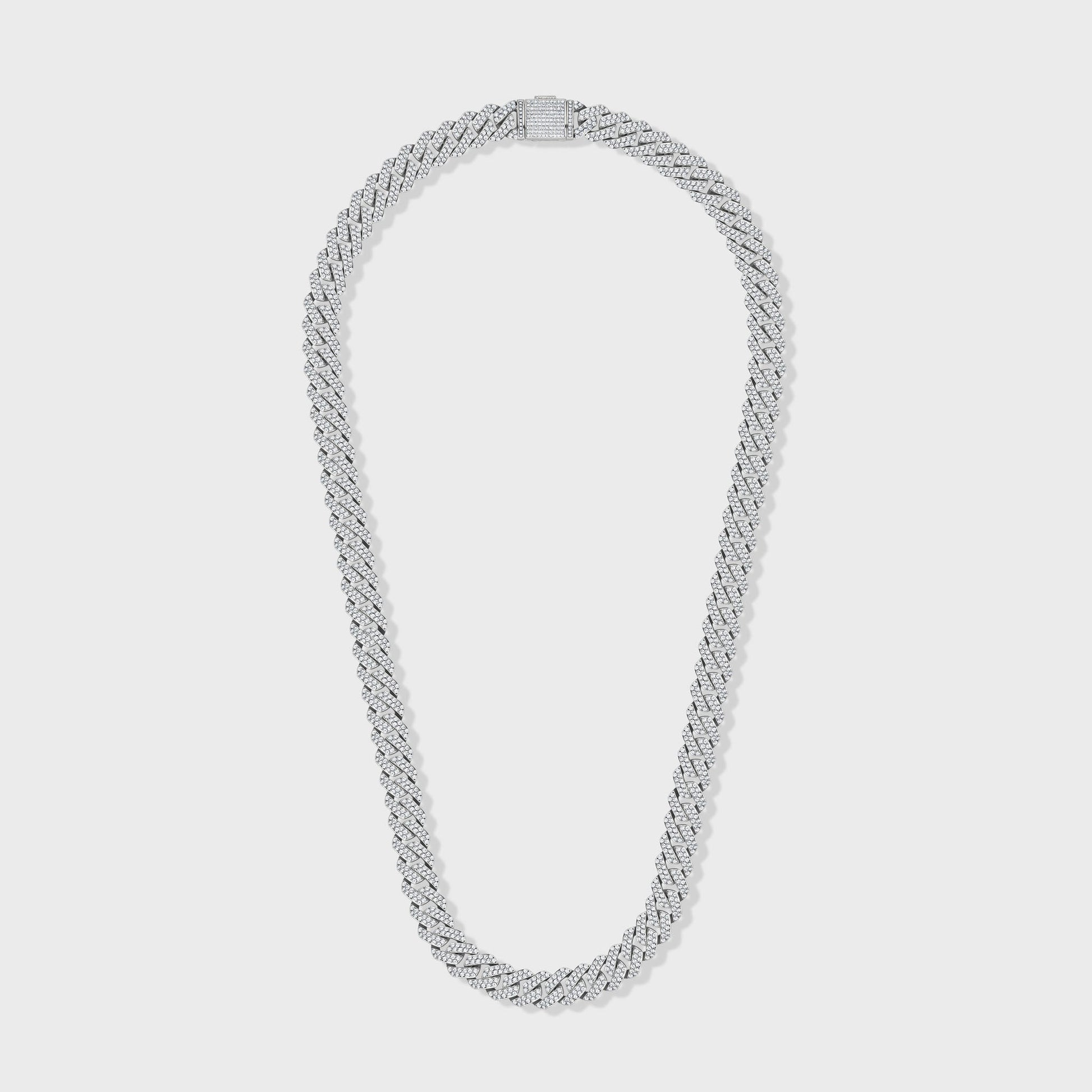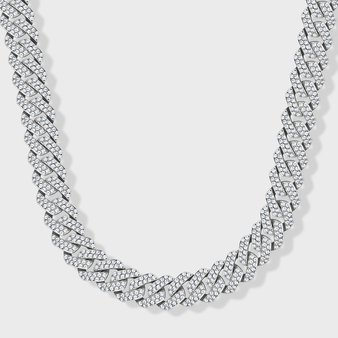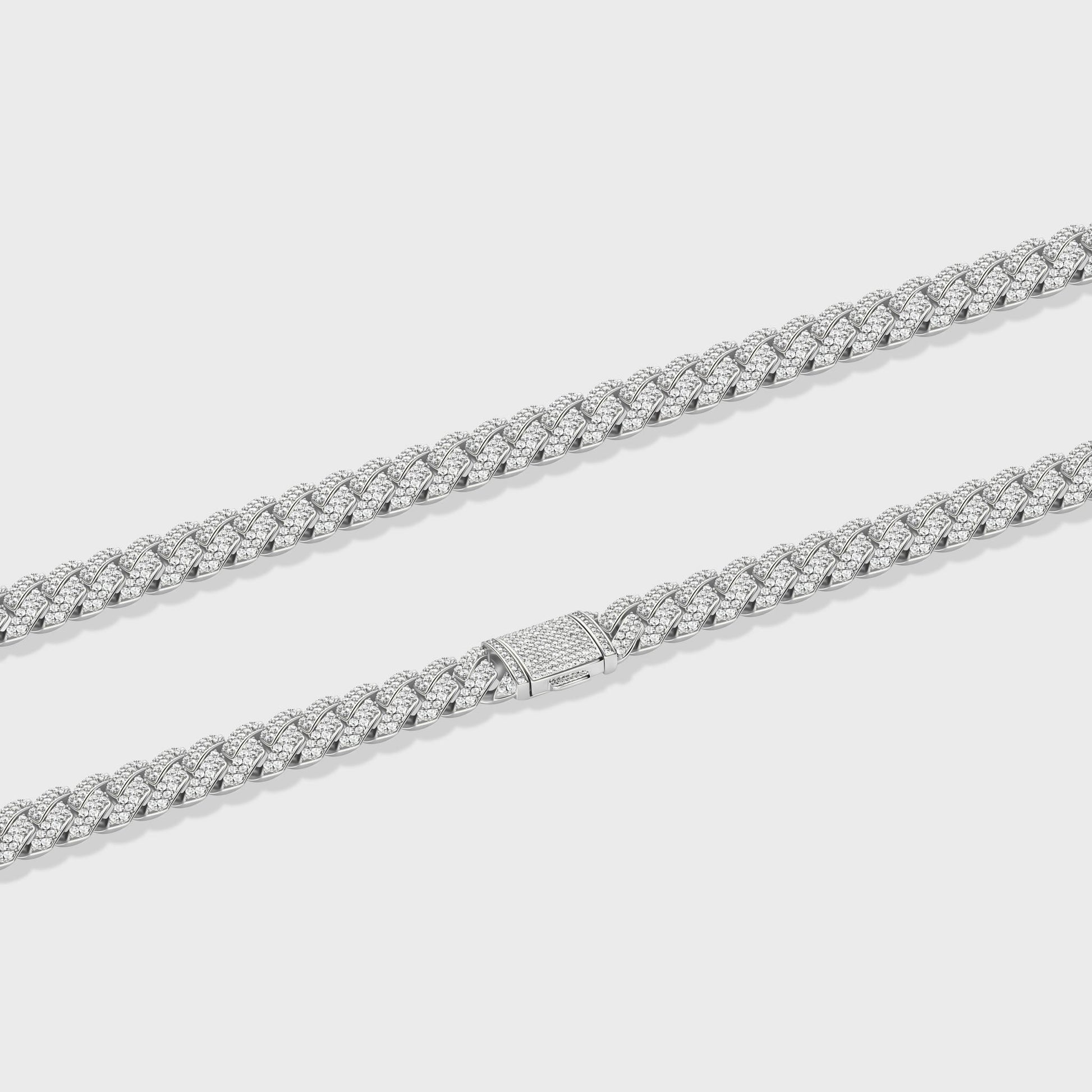 Introducing our 10mm Iced Prong Cuban Silver Chain, this chain features intricate detailing and sparkling CZ Diamonds that catch the light at every angle. Whether you're dressing up for a night out or adding some extra bling to your everyday look, our 10mm Iced Silver Gold Chain is the perfect accessory for any occasion.
