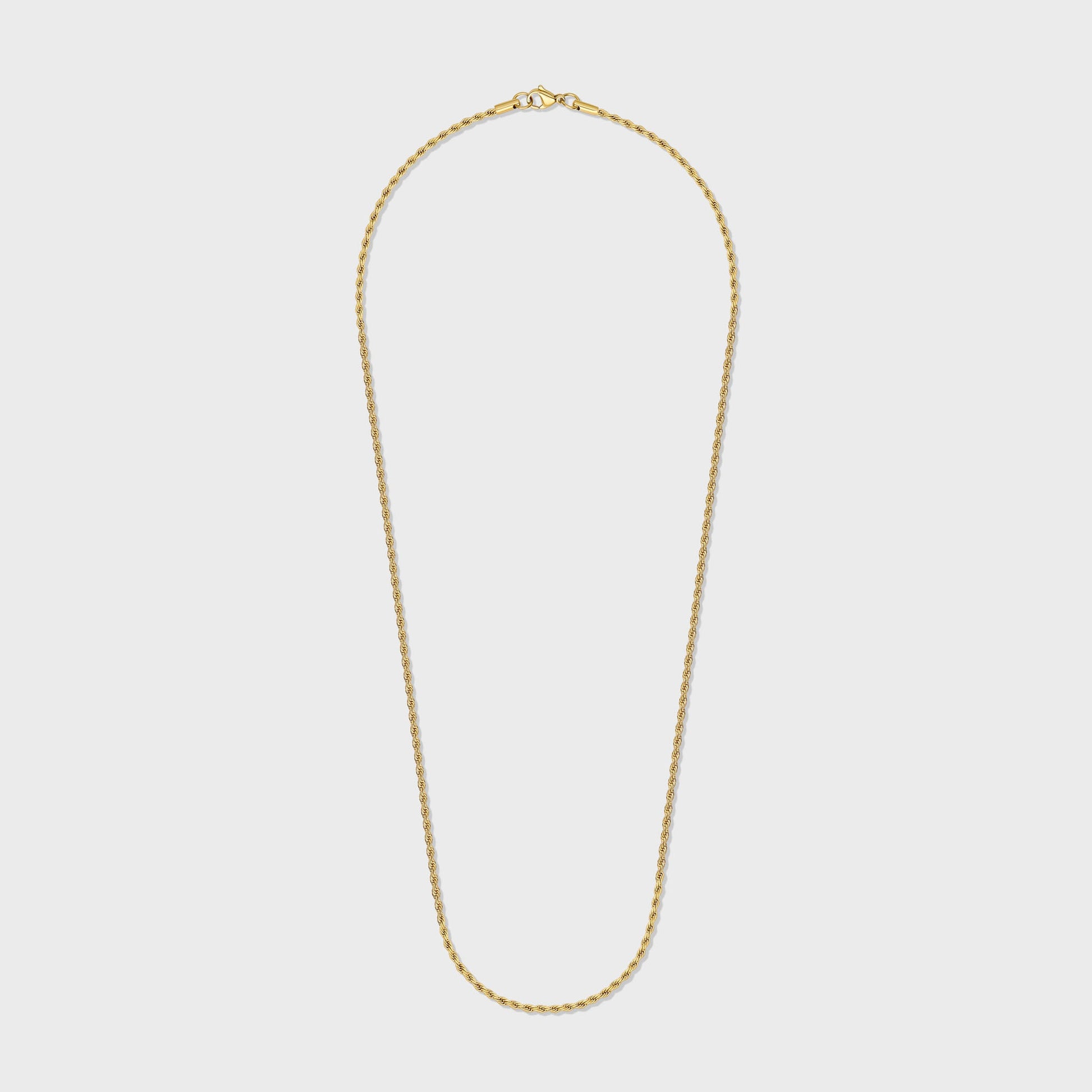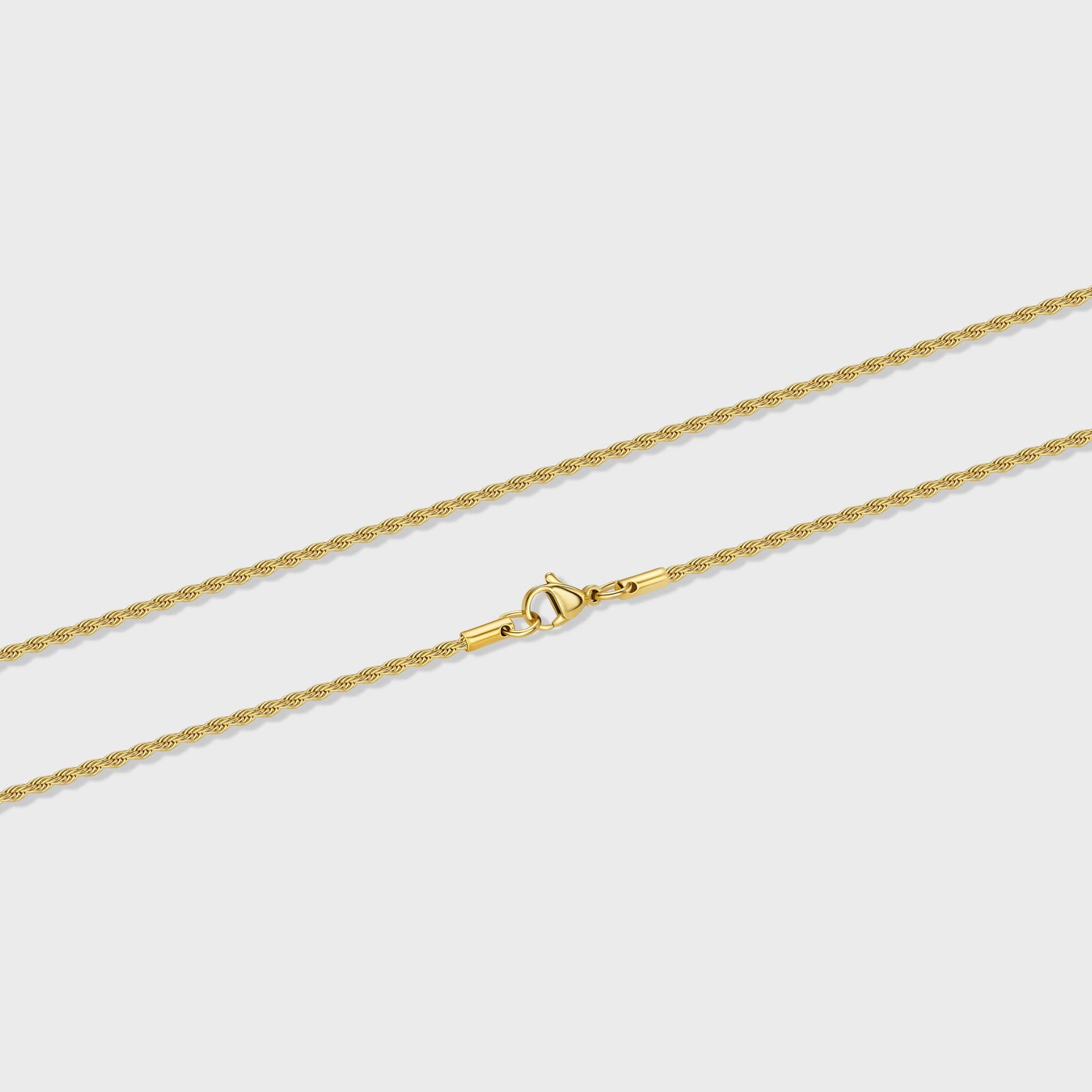 The 2mm gold rope chain is the ultimate statement piece for those who appreciate bold and timeless style. Handcrafted from the finest materials, this chain boasts an intricate design that offers the perfect combination of strength and flexibility. Its smooth and sleek texture makes it a true pleasure to wear, while its classic design ensures that it will never go out of style. Whether you're dressing up or keeping it casual, the gold rope chain is the perfect accessory to take your look to the next level. Made with Real 18K Gold Bonded.