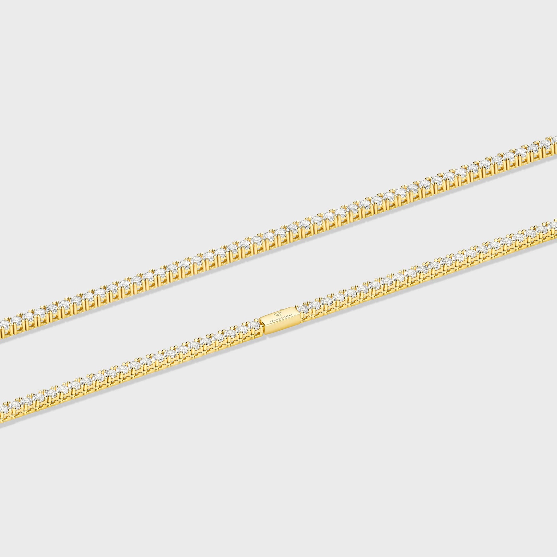 3mm round-cut stones, this Tennis Necklace is pure ice. Dress it up or keep it casual, it's versatile AF. Made with 18K Gold.