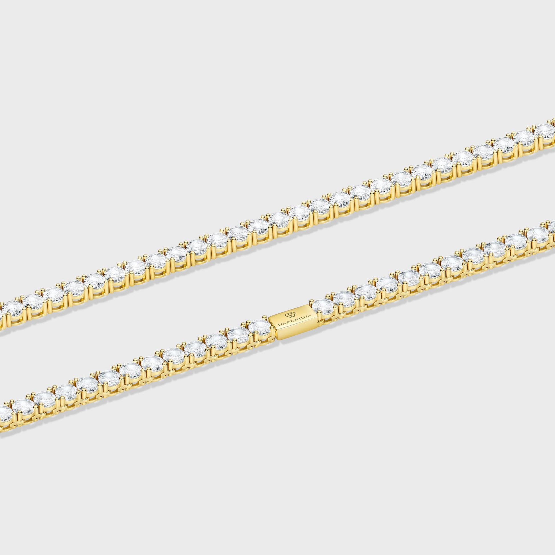5mm round-cut stones, this Tennis Necklace is pure ice. Dress it up or keep it casual, it's versatile AF. Made with 18K Gold.